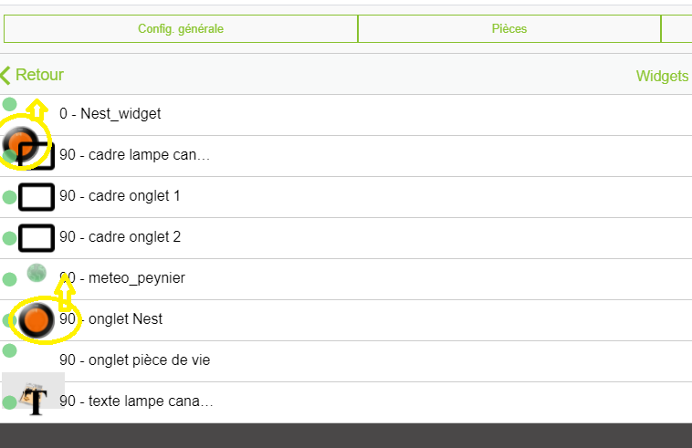 2 - les widgets créés (notamment texte et cadre) se retrouvent sous dashboard dans la 1ère pièce du dashboard, alors que pas paramétrés