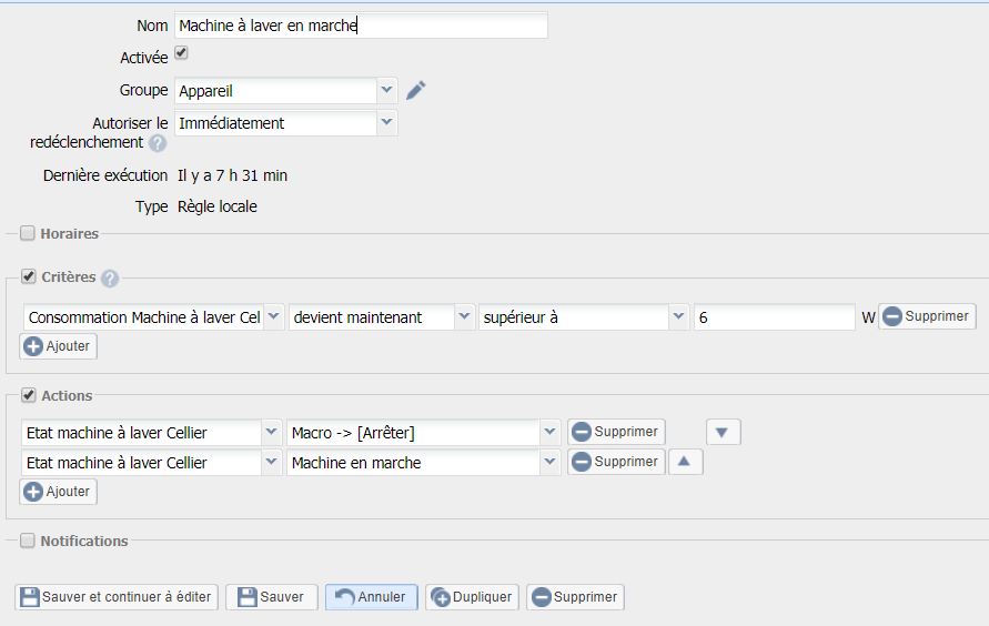 Je cherche à faire une règle qui permet de couper la prise commandée de la machine à laver quand celle-ci est terminée.