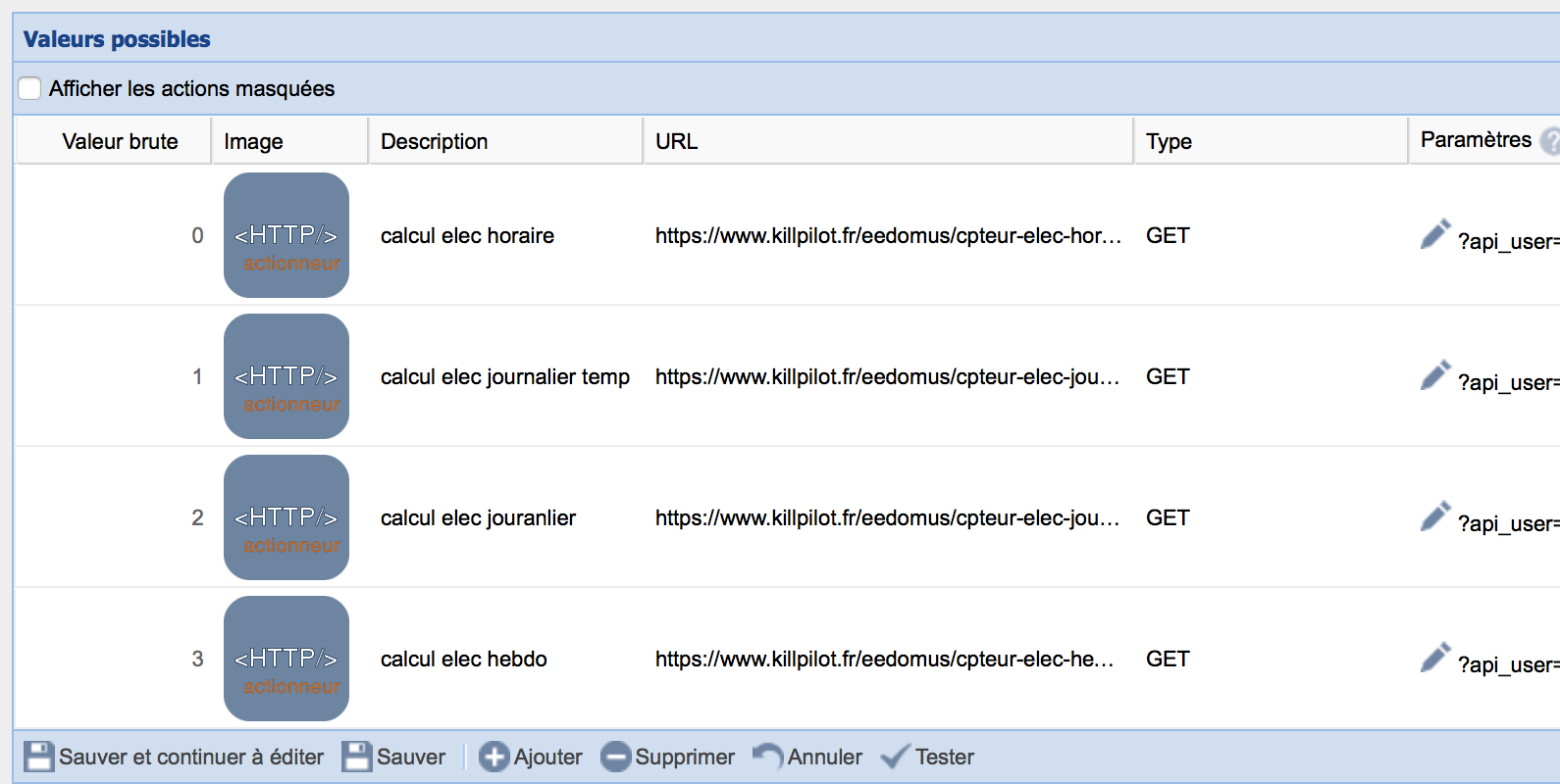 $eedomus->setPeriphValue($_GET['cH'], (((($ConsoInstant/1000) * 60)*$convertion)+$ConsoHeure));killpilot a écrit:je part donc du principe que la mesure instantanné que je fais est valable pour 1 minute (du coup on est d'accord que c'est approximatif mais bon je devrai pas avoir non plus simple au double)