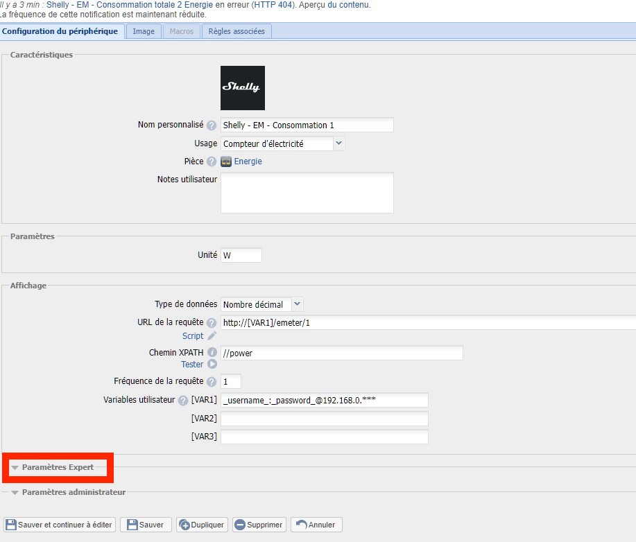 J'ai bien téléchargé le plugin shelly, j'y ai mis l'adresse IP de mon module et après ça se gate...