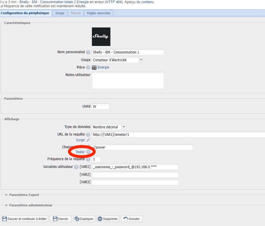 je trouve le Test dans Affichage, je clique sur test, le test fonctionne mais aucune info puissance en W et Kw qui ne remontent , j'ai 12 périphériques qui se sont crées .