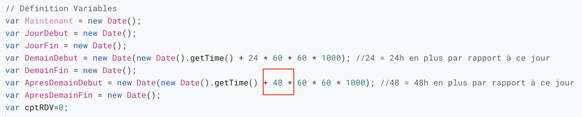 ApresDemainFin.setTime( ApresDemainDebut.getTime() + ((24 * 3600)-1) * 1000); //2 jour de plusRetour vers Scripts & Périphériques du store
