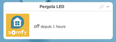 En ce qui concerne les valeurs des LED, j'ai créé des widgets personnalisés (on peut les voir sur la communauté des icônes) avec le % indiqué dedans donc ça permet quand même de voir l'intensité choisie sauf que au bout d'un certain temps, le widget affiche le logo Somfy alors que j'ai mis partout mes icônes personnalisées. :cry:
