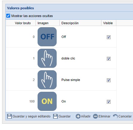 Hello, I have bought the following device "Zigbee" (Tuya Smart Life-Hub ZigBee of 3 bands, wireless switch for smart home), and eedomus recognizes it, the 3 buttons, but when I press, I have put several values, but it only recognizes me pressing "0 = off"